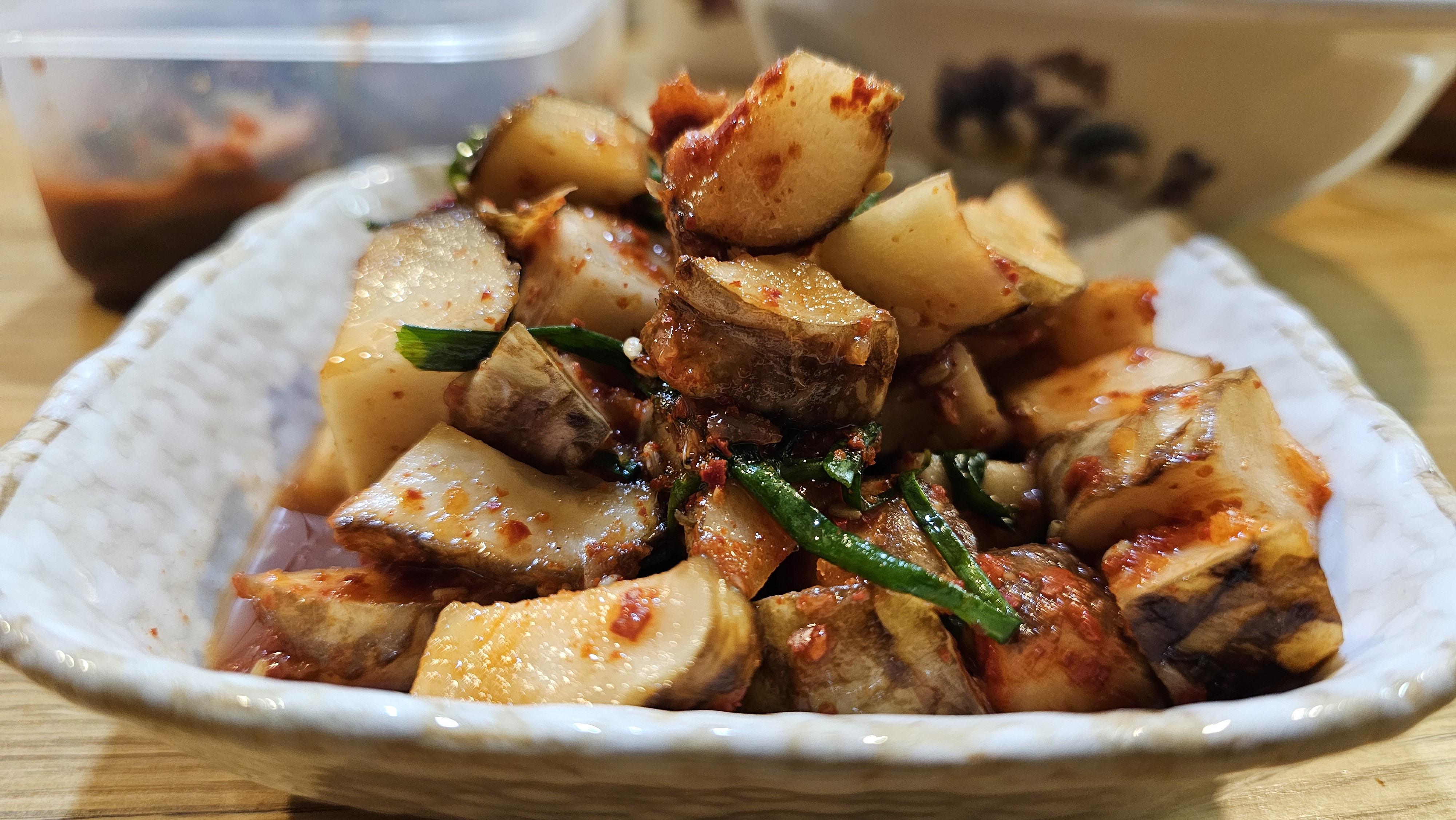 그 천덕꾸러기 돼지감자가 이제는 깍두기 재료로 귀하게 여겨지니 참 아이러니다. 다만, 나의 안락함을 포기하고 스스로 돼지감자의 껍질을 벗기는 게 일이라면 일이다. 표면이 매끈하지 않은 뿌리 위를 칼로 조심히 지날 때마다, 마치 지난 시간의 굴곡을 하나하나 헤아리는 듯 어릴 적 추억에 젖어든다.